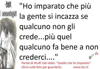 “Ho imparato che più la gente si incazza se qualcuno non gli crede…più quel qualcuno fa bene a non crederci….” dal video..”quello che ho imparato..” di 4tu©