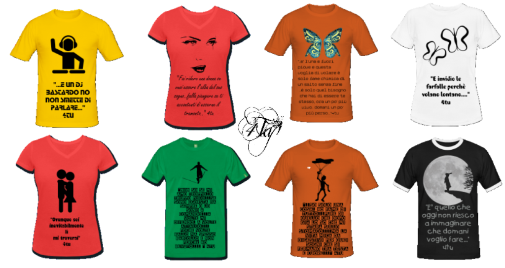 Ve le ho scritte, disegnate, sussurrate, urlate, cantate, pubblicate, dedicate…e ora ve le faccio anche indossare!Cosa?..le mie frasi!Sono orgoglioso di presentarvi la mia prima collezione di magliette da comodino..se vi stancate di portarle nessun problema, potete sempre leggerle!Offriamo t-shirt da uomo, donna e bambino/a in tutti colori (bianco, nero, navy, giallo, green ecology, verde muschio, verde melange,antracite, blu scuro, blu pavone, rosso scuro, arancione) e le taglie . Motivi magnifici e prezzi convenienti per le t-shirt personalizzate musicali d’autore.