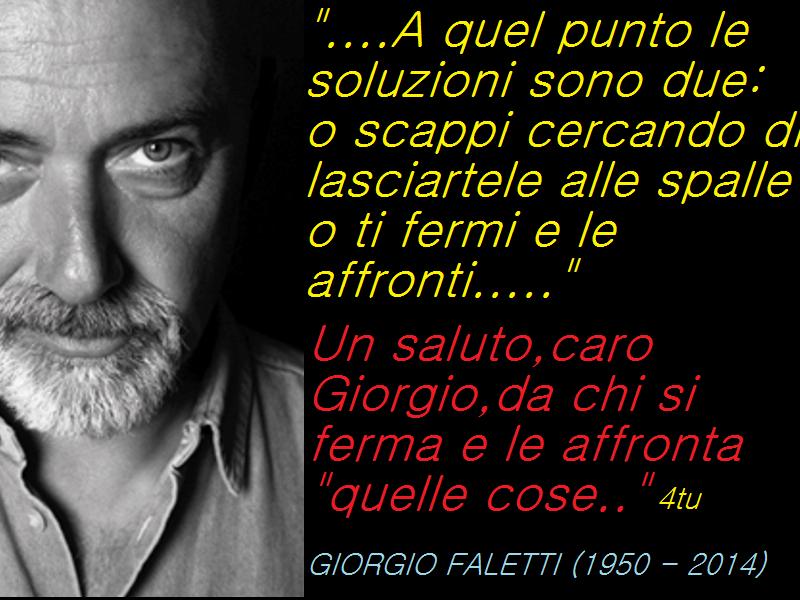 L’eterna lotta tra lo stare bene e lo stare male..tra scappare e combattere….io ho scelto da che parte stare e COME STARE…e ci provo ogni giorno a mantenere questa promessa che mi sono fatto caro GIORGIO FALETTI…un saluto OVUNQUE TU SIA ORA….
