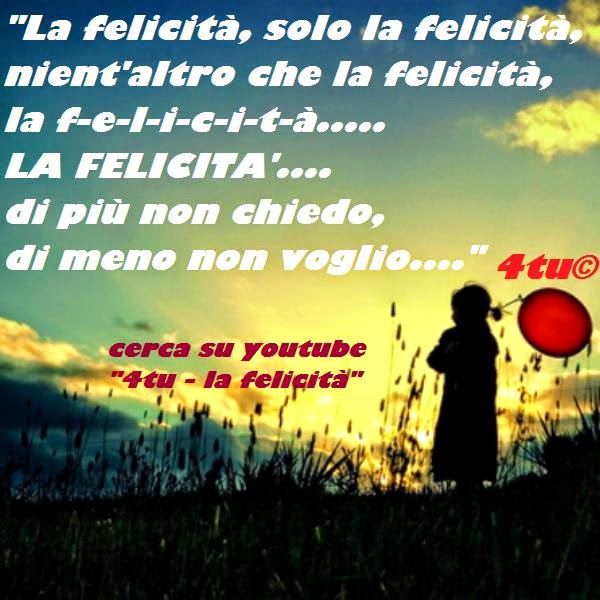 “La felicità, solo la felicità, nient’altro che la felicità, la f-e-l-i-c-i-t-à…..LA FELICITA’….di più non chiedo, di meno non voglio….” 4tu©