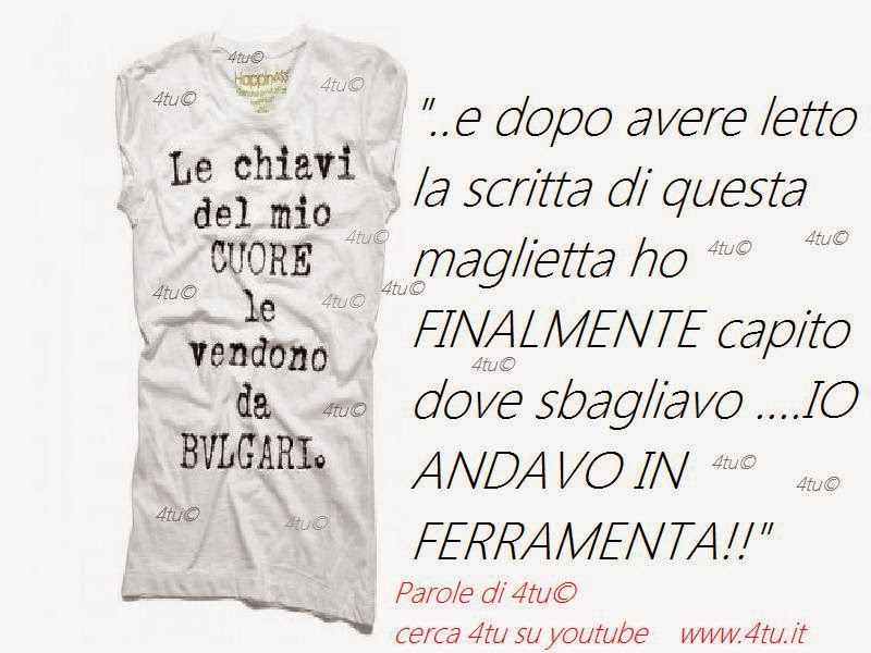 “Le chiavi del mio cuore le vendono da bulgari”..e dopo avere letto la scritta di questa maglietta ho FINALMENTE capito dove sbagliavo….IO ANDAVO IN FERRAMENTA!!”
