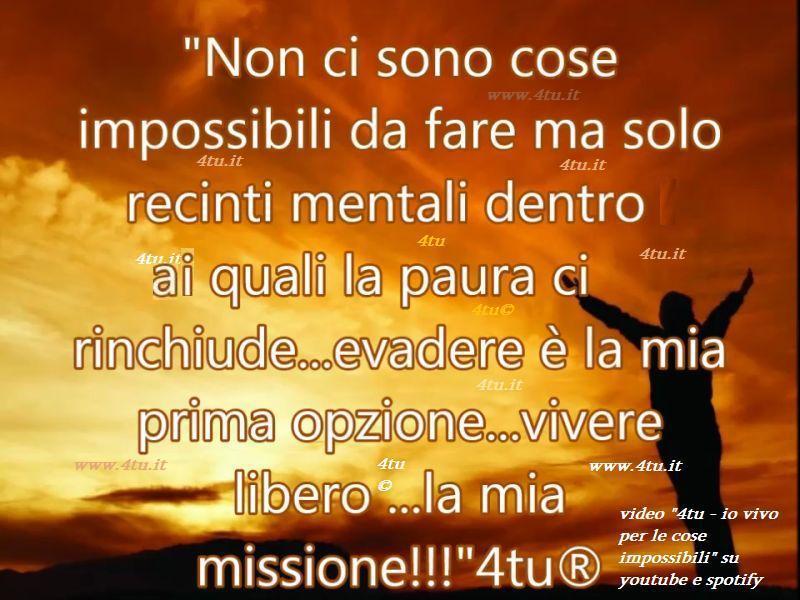“Non ci sono cose impossibili da fare ma solo recinti mentali dentro ai quali la paura ci rinchiude..evadere è la mia prima opzione..vivere libero la mia missione” di 4tu© video “io vivo per le cose impossibili”