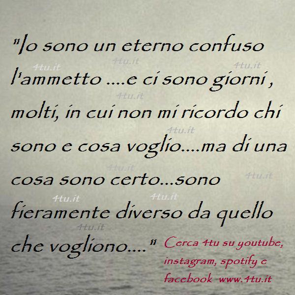 “Io sono un eterno confuso l’ammetto ….e ci sono giorni , molti, in cui non mi ricordo chi sono e cosa voglio….ma di una cosa sono certo…sono fieramente diverso da quello che vogliono….” di 4tu©