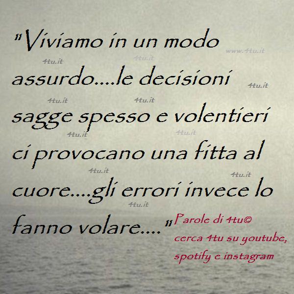 “Viviamo in un mondo assurdo..le decisioni sagge spesso e volentieri ci provocano una fitta al cuore..gli errori invece ci fanno volare