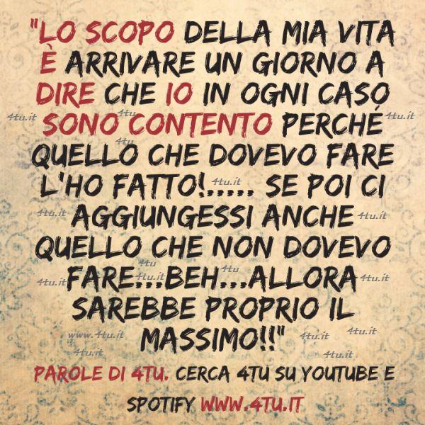“Lo scopo della mia vita è arrivare un giorno a dire che io in ogni caso sono contento perchè quello che dovevo fare l’ho fatto!se poi ci aggiungessi anche ..quello che non dovevo fare..beh..allora sarebbe proprio il massimo”