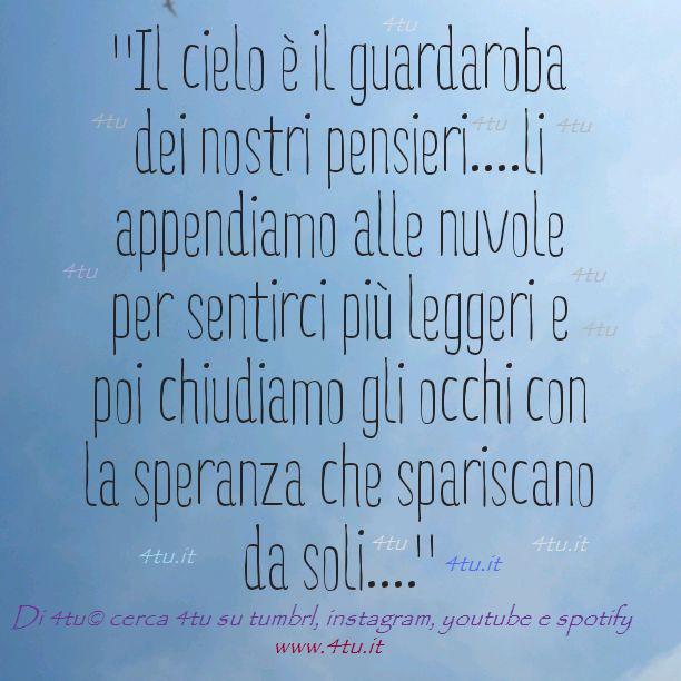 “Il cielo è il guardaroba dei nostri pensieri..li appendiamo alle nuvole per sentirci più leggeri e poi chiudiamo gli occhi sperando che spariscano da soli” di 4tu©