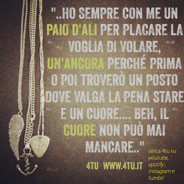 “Ho sempre con me un paio d’ali per placare la voglia di volare..un’ancora perchè prima o poi troverò un posto in cui valga la pena stare e un cuore..beh..il cuore non può mai mancare” di 4tu©
