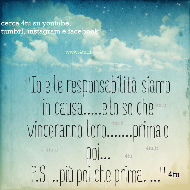 “io e le responsabilità siamo in causa..e lo so che vinceranno loro prima o poi….p.s più poi che prima..”