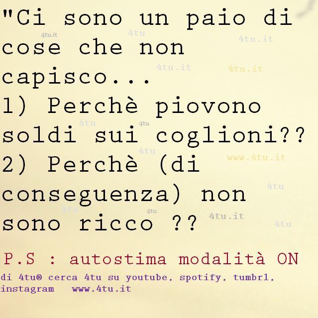 “Ci sono un paio di cose che non capisco…1) perchè piovono soldi sui coglioni?