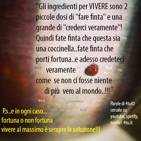 e adesso credeteci veramente come se non ci fosse niente di più vero al mondo..!!..in goni caso..fortuna o non fortuna ..cercate di vivere al massimo p.s e in ogni caso..fortuna o non fortuna…vivere al massimo è sempre la soluzione” parole di 4tu