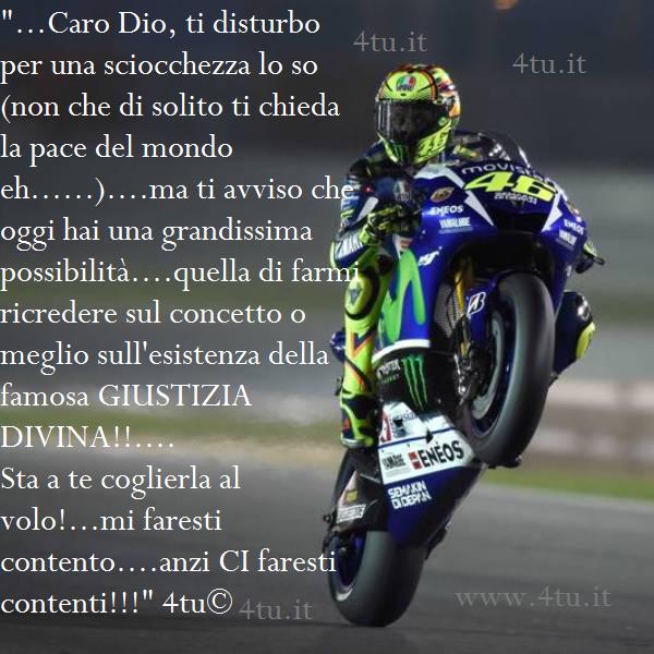 “…Caro Dio, ti disturbo per una sciocchezza lo so (non che di solito ti chieda la pace del mondo eh……)….ma ti avviso che oggi hai una grandissima possibilità….quella di farmi ricredere sul concetto o meglio sull’esistenza della famosa GIUSTIZIA DIVINA!!….Sta a te coglierla al volo !…o al limite far volare fuori pista il numero 99 (senza conseguenze fisiche!!ovviamente!!)…mi faresti contento….anzi CI faresti contenti!!!” 4tu© 4tu.it