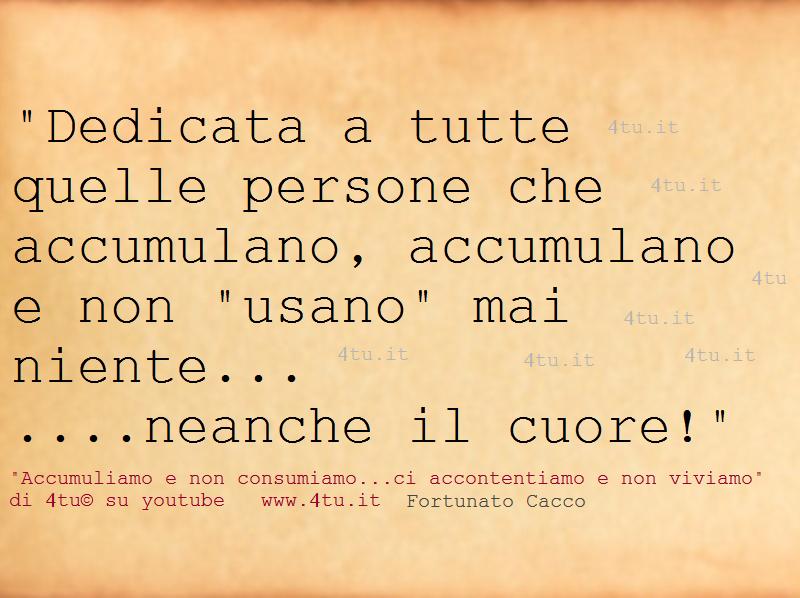 “Accumuliamo e non consumiamo…ci accontentiamo e non viviamo” di 4tu©